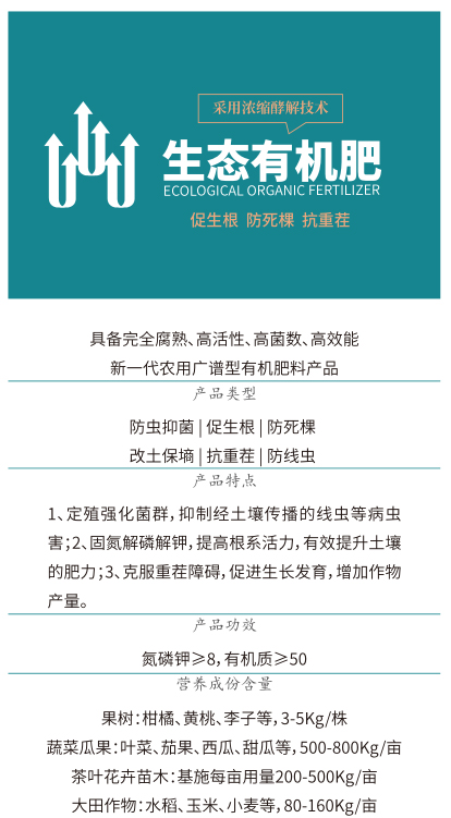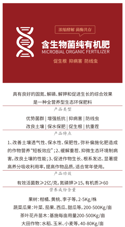 促進作物生長,降低發病率 共富源有機肥富含有益微生物,施入土壤后,微生物在生長繁殖過程中,產生大量的次生代謝 產物,能促使有機物分解轉化。直接或間接為作物提供多種營養和刺激性物質,促進和調控作 物生長。這些微生物在作物根系形成的優勢有益菌群,抑制有害病原菌繁衍,增強作物抗病性 和抗逆性,減輕了作物的土傳性病害,降低了發病率。